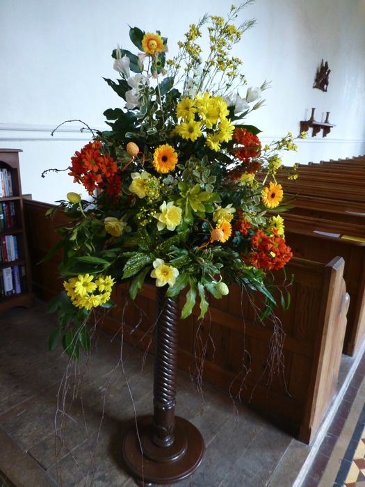 The weather this Easter was unseasonably cold with flurries of snow and a biting north-easterly wind. Nevertheless, the flowers in church on Easter Sunday morning looked bright and full of the joys of Spring!
