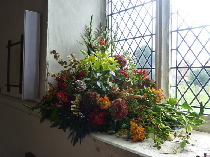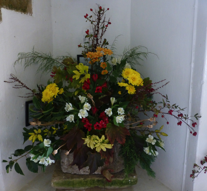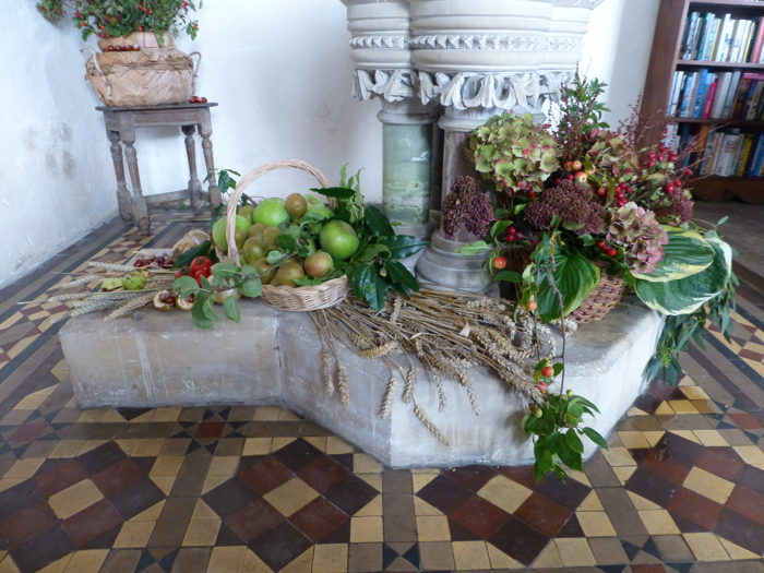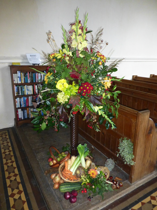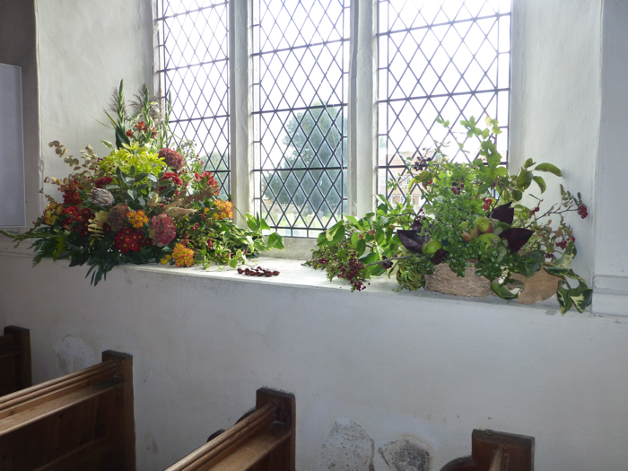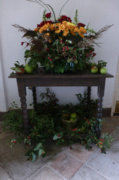 The Harvest Festival 2013 service held on Friday 4th October once again featured flower arrangements with fruits and vegetables - and conkers!. Later the produce was donated to the Norfolk Hospice Tapping House.