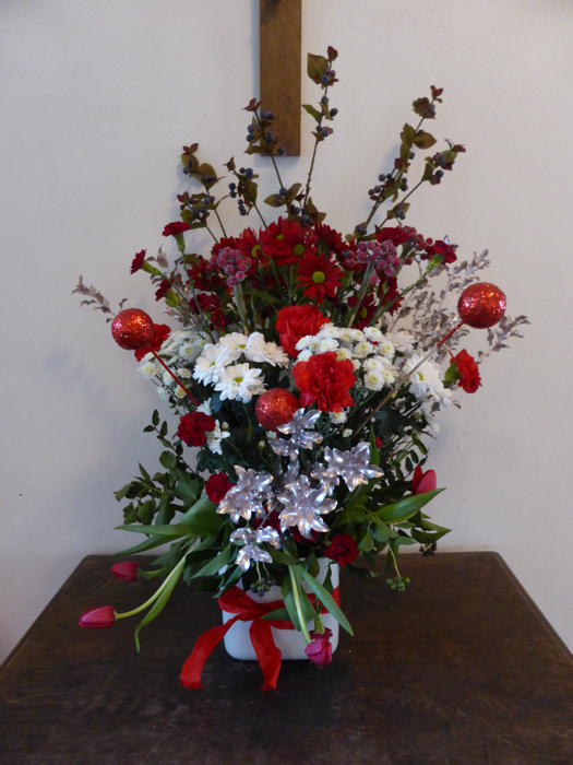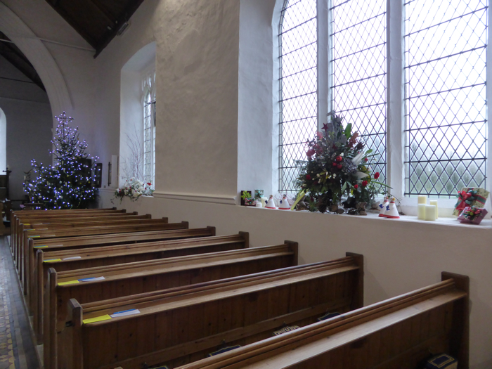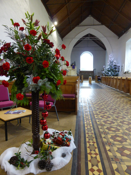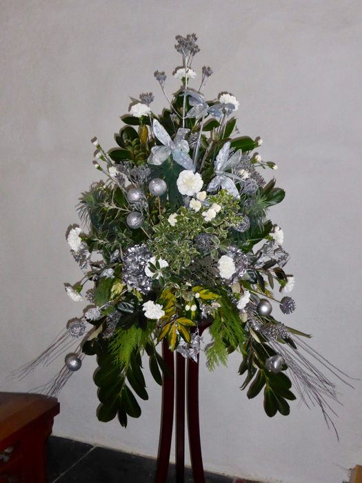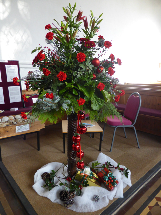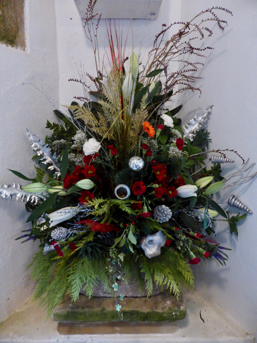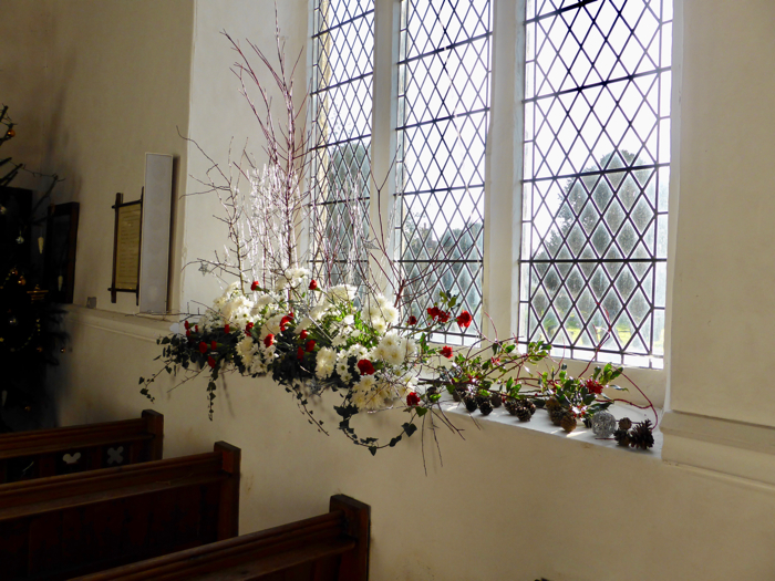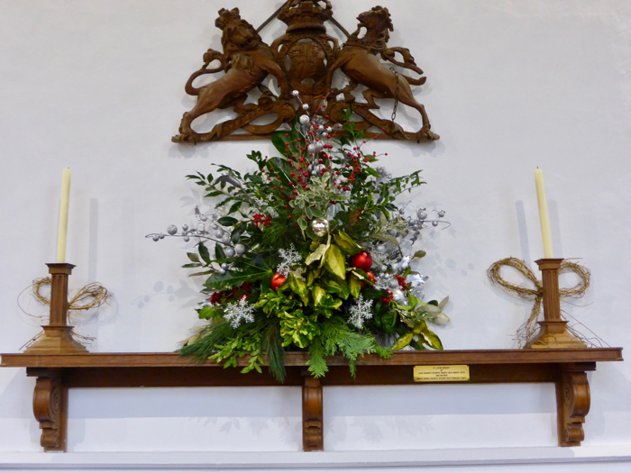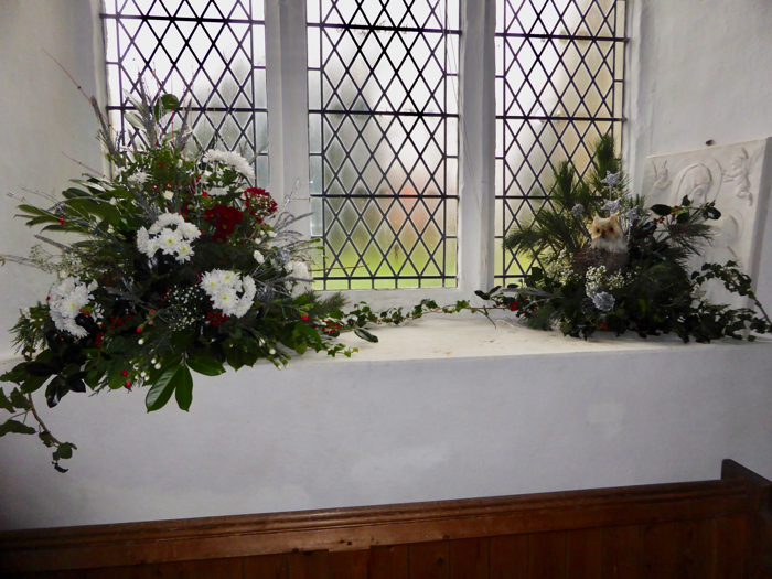 The flower displays at Christmas in St. Mary's church. An owl has decided to drop in to check out the displays!